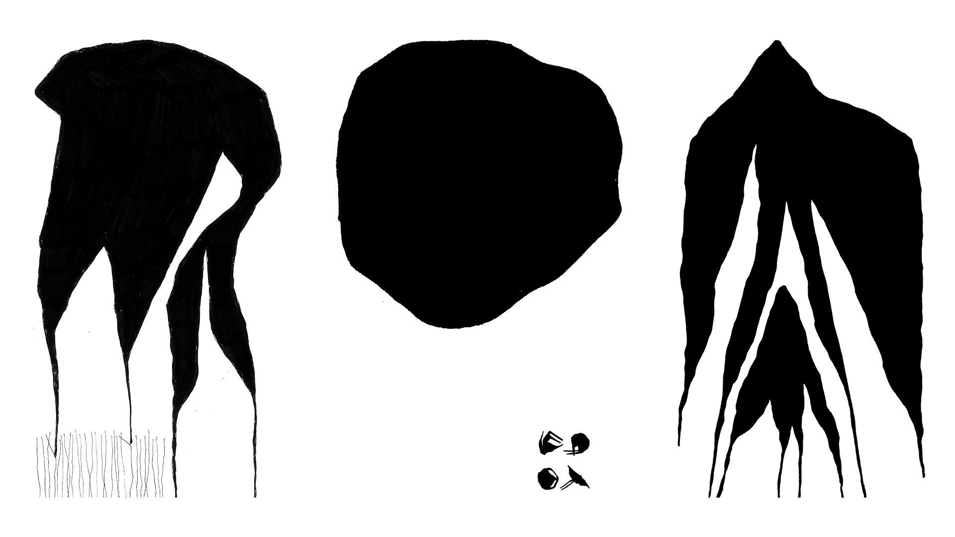 The process was associative and non-linear. The figures - almost-birds, almost-humans, almost-letters, undefined.